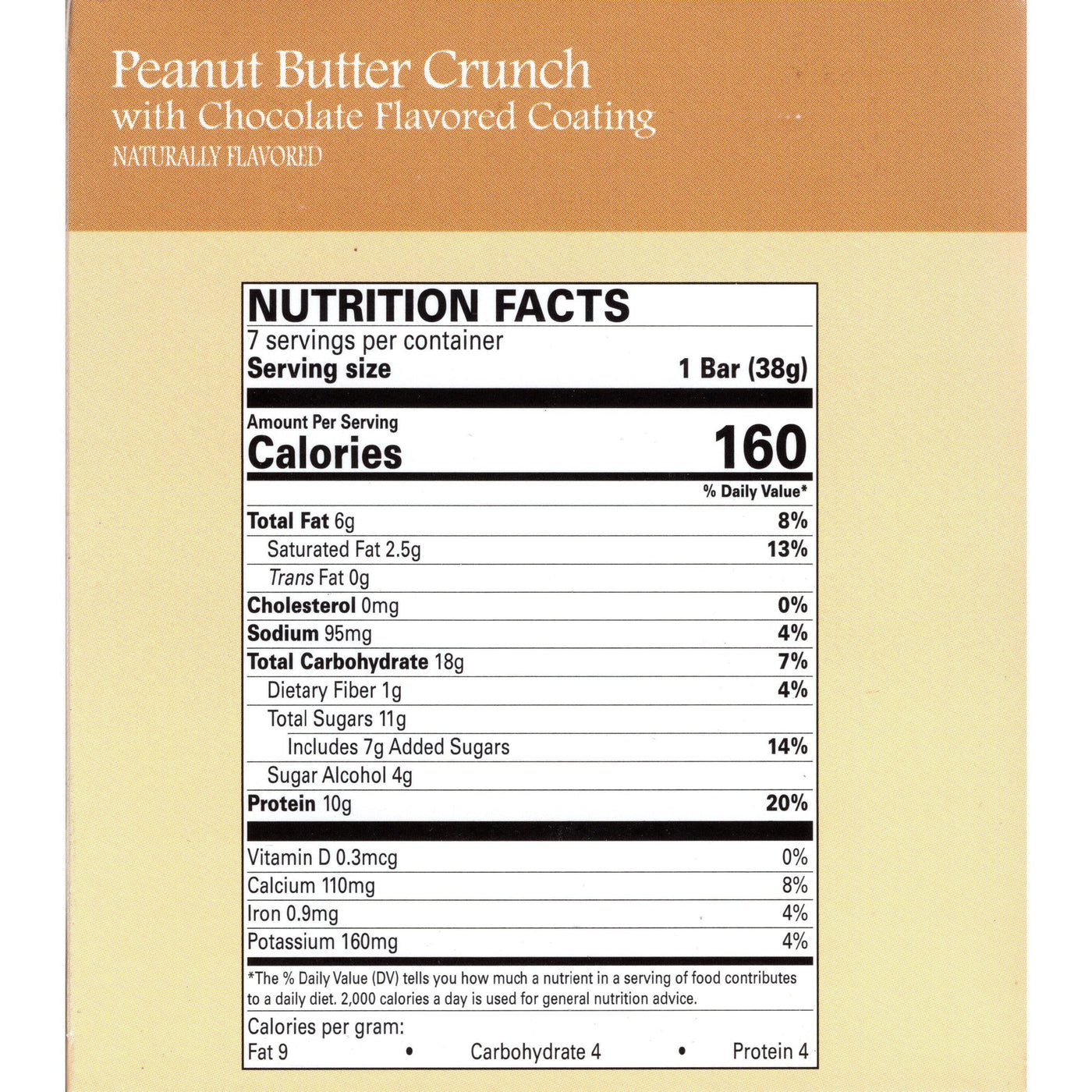 Serving Size: 1 Bar (38g) Servings Per Container: 7