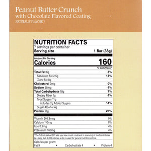 The Peanut Butter Crunch Snack Bar (formerly Peanut Butter Crisp) is made with delicious peanut butter surrounded by a layer of decadent chocolate. If you have been looking for something tasty, but low in fat then try out the Peanut Butter Crunch Snack Bar. High Protein - 10 grams Per Bar Low Calorie - 160 Calories Per Bar 1 grams of Fiber Per Bar Certified...