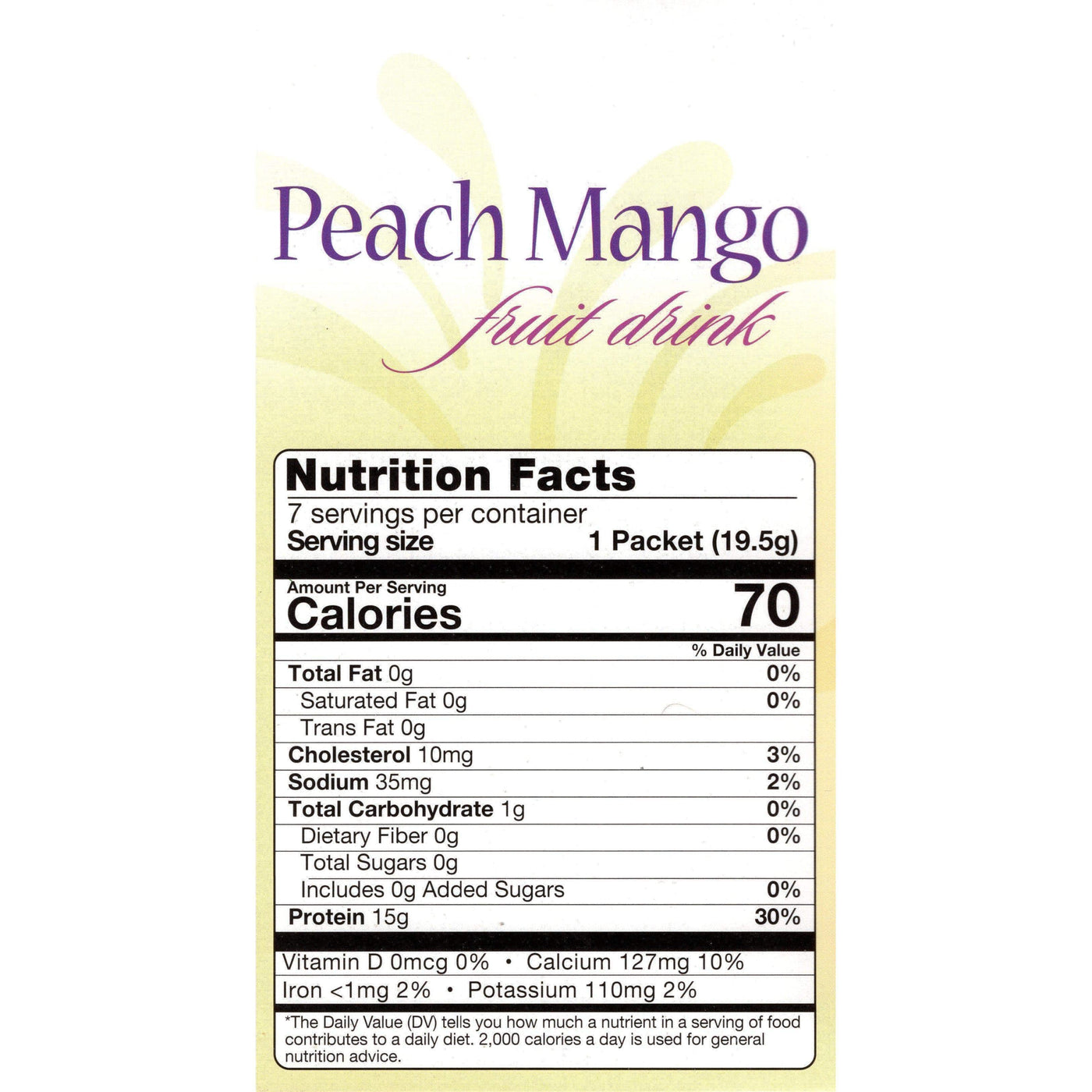 A delicious, refreshing combination of peach and mango, the HealthSmart Peach Mango Drink provides a high protein, fat-free, low calorie and low carb option that allows you to enjoy a tasty beverage without any guilt!