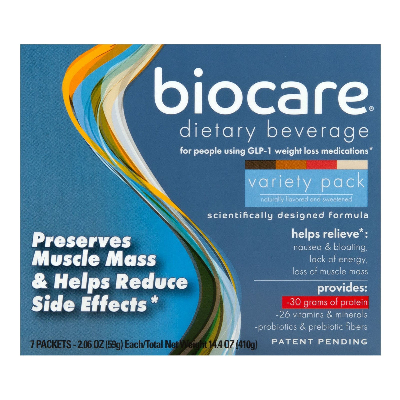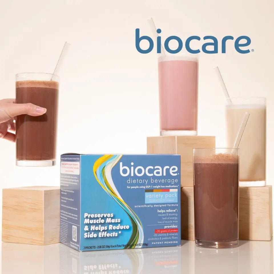 Discover your favorite flavor with the Biocare 30G Protein Beverage Variety Pack! This 7-count pack includes a delicious mix of beverages – 2 Vanilla, 2 Chocolate, 2 Chocolate Salted Caramel, and 1 Strawberries & Cream – each packed with 30 grams of high-quality protein, essential vitamins, and anti-nausea ingredients. Specially designed for individuals on GLP-1 medications like semaglutide, these beverages help combat medication side effects while supporting weight management, muscle maintenance and overall wellness. Perfect for variety, convenience, and great taste – try Biocare’s protein beverage variety pack today!