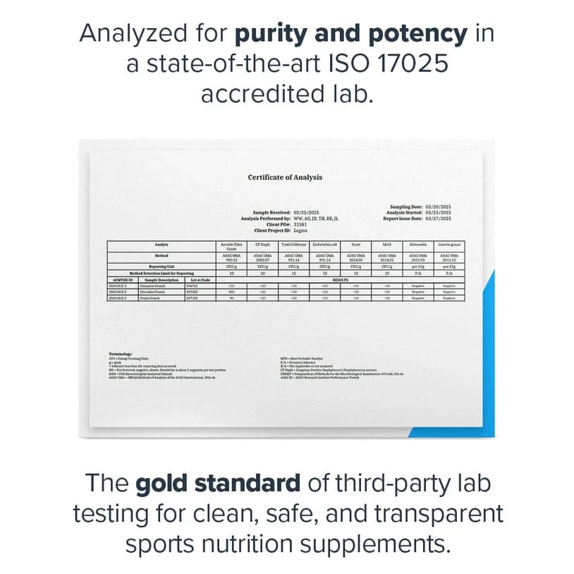 • Tested for purity and potency in a state-of-the-art ISO 17025-accredited third-party lab and certified to contain no contaminants or banned substances