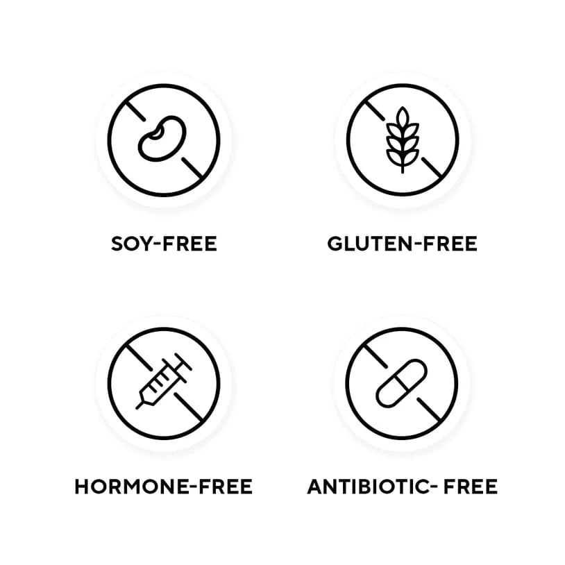 • No soy, gluten, artificial sweeteners, flavors, food dyes, fillers, or other unnecessary junk