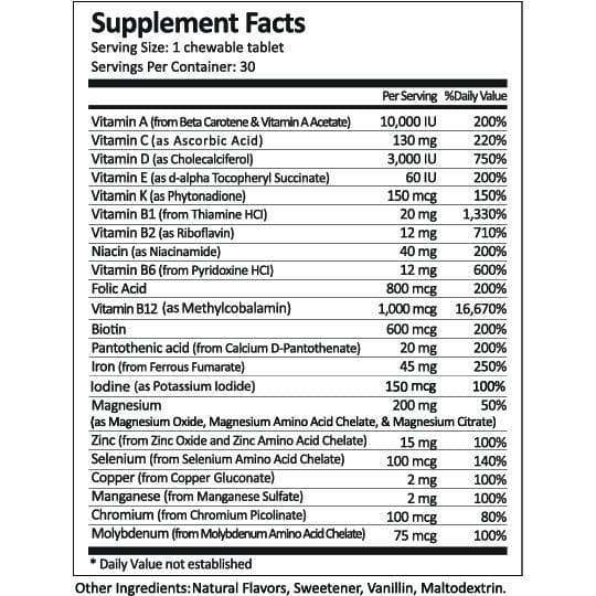 • Once a day Bariatric Multivitamin Chewable with 45mg of iron