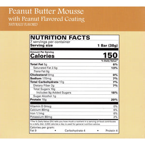 The Weight Loss Systems Peanut Butter Mousse bar (formerly Creamy Peanut Butter) takes a crispy bottom layer, tops it with delicious mousse, and drizzles with peanut butter-flavored goodness. Each of these low-fat peanut delights contain 10 grams of quality protein, 2 grams of fiber and provides 6% of your Daily Value of Iron and Calcium